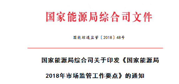 國家能源局2018年市場監(jiān)管工作要點