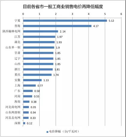 下圖為目前各個省市一般工商業(yè)銷售電價的再降價方案: