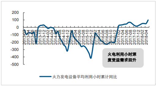 2018年一季度我國最大的清潔能源——水電處于一年中的枯水期,發(fā)電出力較弱,在旺盛的用電需求推動(dòng)下,火電利用小時(shí)同比實(shí)現(xiàn)大幅增長。2018年1-5月份火電累計(jì)發(fā)電量約為19914億千瓦時(shí),同比增長8.1%;火電累計(jì)利用小時(shí)達(dá)到1776小時(shí),比上年同期增加99小時(shí)。