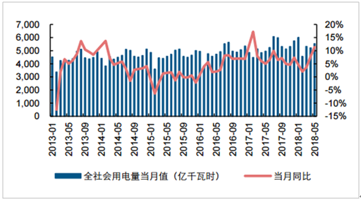 2018年1-5月全社會(huì)用電量同比增長9.8%