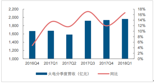 2018年一季度火電板塊歸母凈利潤同比增加33.18%