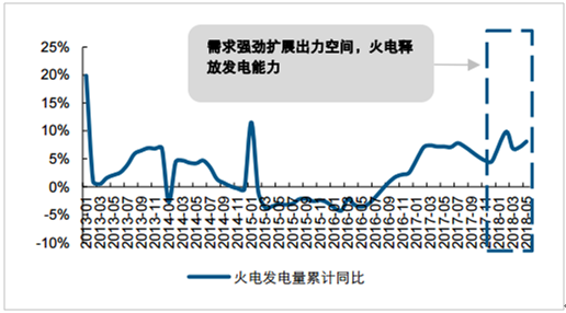 2018年1-5月火電發(fā)電量累計(jì)同比增長8.1%