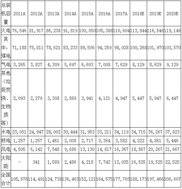 截至目前,我國用電需求持續(xù)旺盛,裝機(jī)增長速度大幅減弱,預(yù)計(jì)我國2018-2020年的用電量增速約為6.23%、5.26%和4.38%。