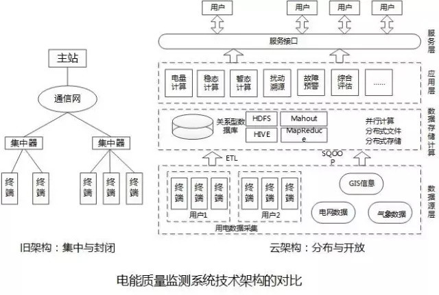 兩種架構(gòu)下的電能質(zhì)量信息系統(tǒng)對比如下圖所示: