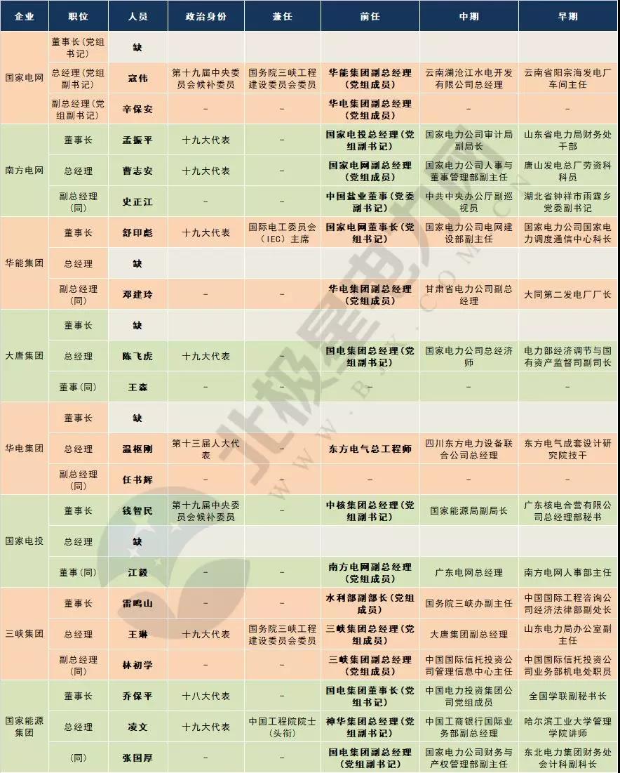 3、兩網(wǎng)五大+三峽(其實(shí)還有中核、東氣這些來著,但是電力君覺得他們不會(huì)和的,真的不會(huì),更不要說中廣核了)前三之間的調(diào)動(dòng)真的很頻繁。