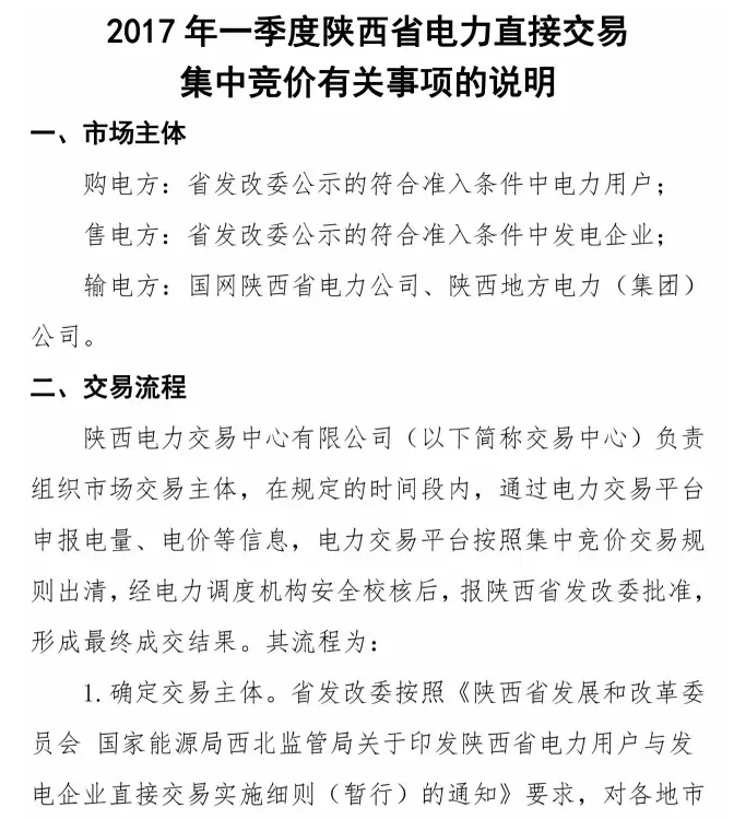 各電力用戶和發(fā)電企業(yè):為積極探索我省電力體制改革,推進(jìn)電力市場化建設(shè),發(fā)揮陜西電力交易中心交易平臺的作用,按照《陜西省發(fā)展和改革委員會 國家能源局西北監(jiān)管局關(guān)于印發(fā)陜西省電力用戶與發(fā)電企業(yè)直接交易