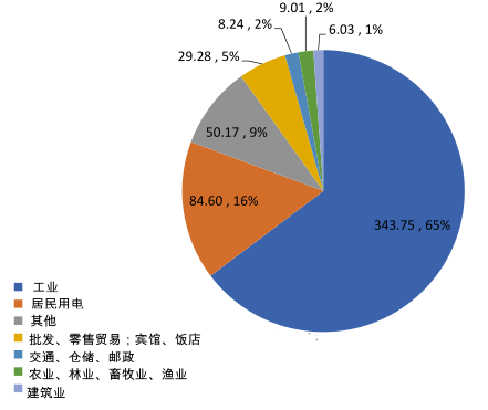 圖 6 廣東 2015 年的電力需求來源(TWh )