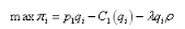 上式中,p1火電標桿上網(wǎng)電價;qi為實際火力發(fā)電量;C1(qi)為火力發(fā)電量成本函數(shù);