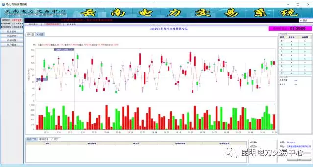 中間區(qū)域是整個市場的量價統(tǒng)計信息、K線圖(什么是K線?小編已經為您準備好了復習資料,昆明電力交易中心發(fā)布全國首個日前電量交易K線;右上角的買1、買2、買3、買4、買5,賣1、賣2、賣2、賣4、賣5,相信你一定不陌生,展示的是當前最優(yōu)先買進、賣出的前5位申報價格以及對應的電量數;再看下方的委托訂單、撤銷訂單、已成交、下單……一個個熟悉的字眼,這不就是股票操作嗎?您猜對了,連續(xù)掛牌就是參照股票連續(xù)競價規(guī)則,結合電力交易實際演化而來的全新電力交易品種。