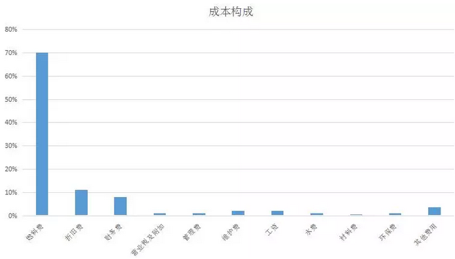 對(duì)于一個(gè)典型燃煤發(fā)電企業(yè),各項(xiàng)費(fèi)用所占比例大體上如下圖所示: