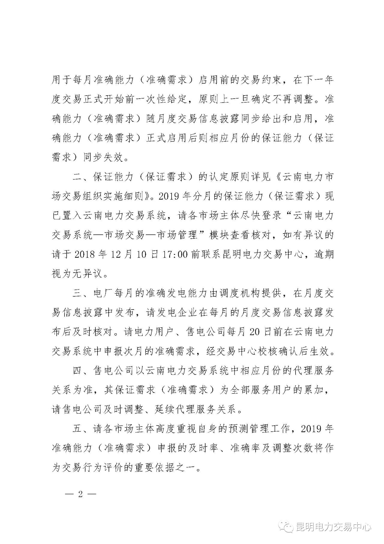 據(jù)悉,昆明電力交易中心日前發(fā)布了《關(guān)于確定2019年發(fā)電能力及用電需求有關(guān)事項(xiàng)的通知》,電力用戶、售電公司需每月20日前在云南電力交易系統(tǒng)中申報(bào)次月準(zhǔn)確需求,經(jīng)交易中心校核確認(rèn)后生效。