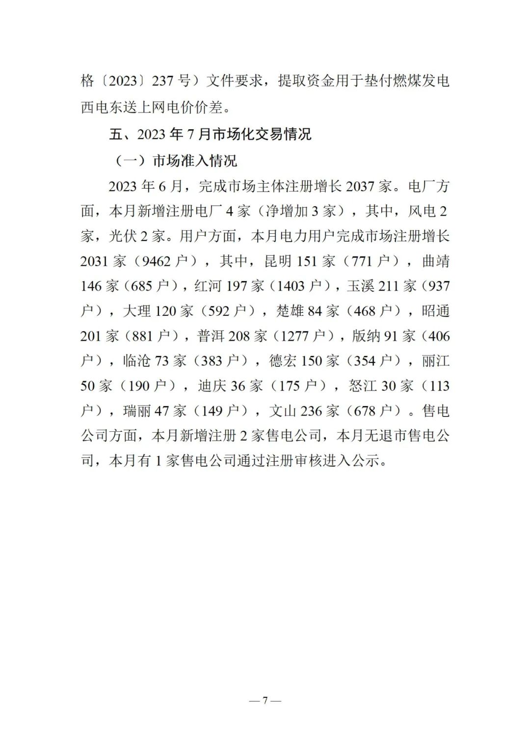 云南電力交易月報(bào)(2023年7月)