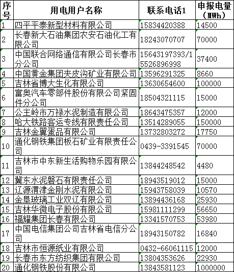 吉林省2018年度電力用戶與發(fā)電企業(yè)第二次年度交易(第一批)預(yù)申報結(jié)果:644萬兆瓦時
