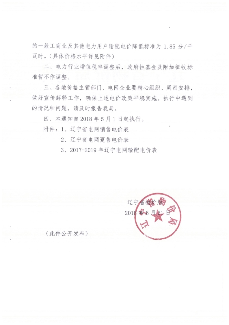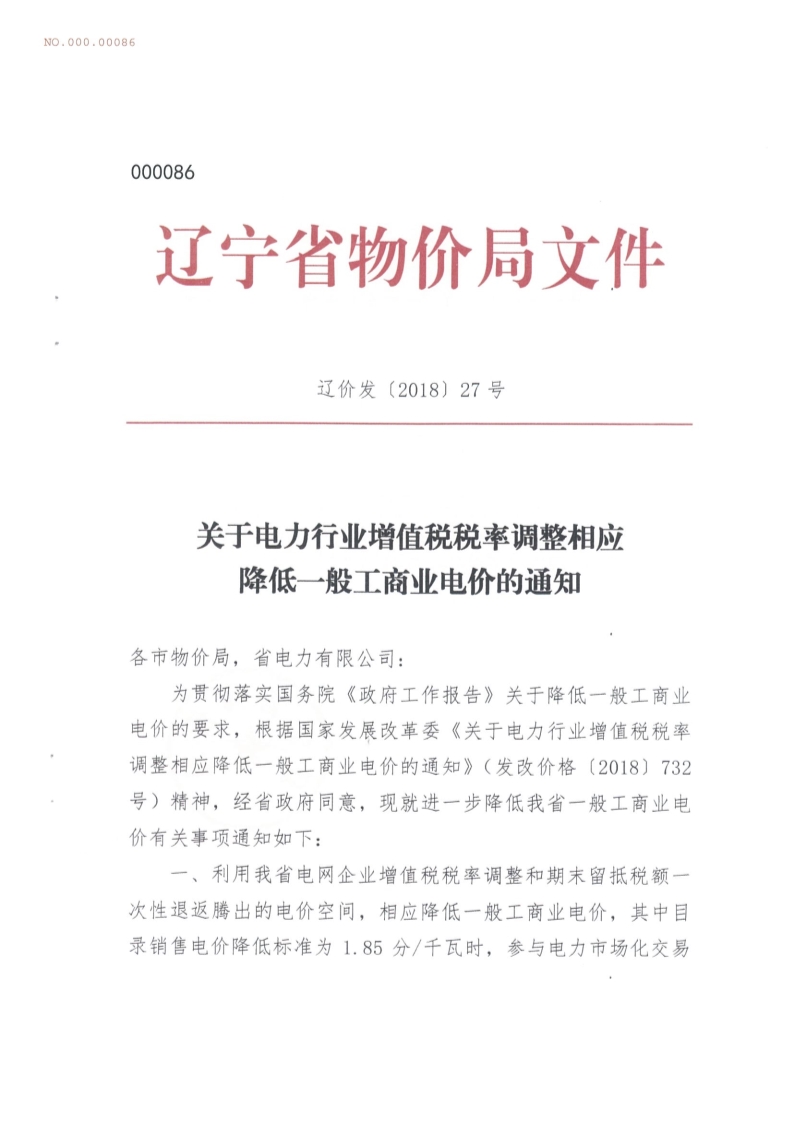 附件3:《關(guān)于電力行業(yè)增值稅稅率調(diào)整相應(yīng)降低一般工商業(yè)電價(jià)的通知》(遼價(jià)發(fā)【2018】27號(hào))