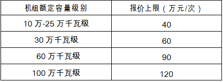 第三十一條 賣方火電企業(yè)按照機組額定容量級別報價,各級別機組的報價上限見下表: