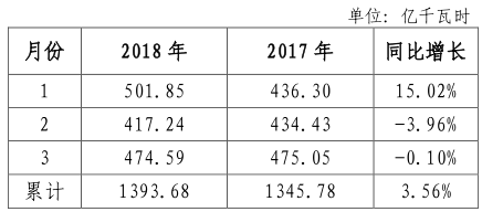 2018 年一季度,全省全社會(huì)用電量完成 1393.68 億千瓦時(shí),同比增長(zhǎng) 3.56%。