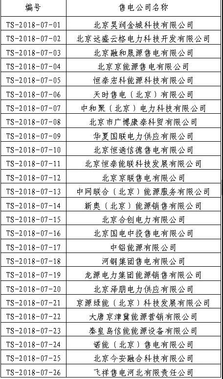 公示期間,市場(chǎng)有關(guān)方面未對(duì)該75家售電公司提出異議,按照國(guó)家發(fā)改委、國(guó)家能源局《售電公司準(zhǔn)入與退出管理辦法》(發(fā)改經(jīng)體﹝2016﹞2120號(hào))及北京市城市管理委《北京市售電公司準(zhǔn)入與退出管理實(shí)施細(xì)則》(京管發(fā)﹝2018﹞70號(hào))文件有關(guān)規(guī)定,該75家售電公司(見(jiàn)附表)在首都電力交易中心的注冊(cè)自動(dòng)生效。