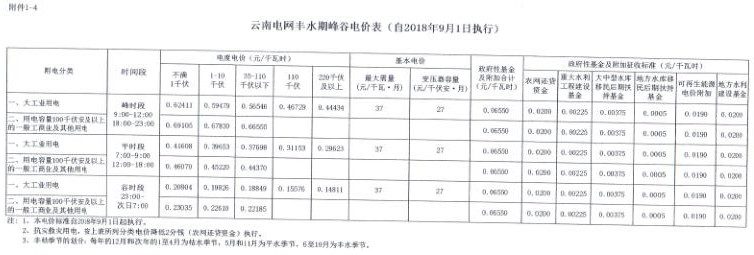 云南省物價(jià)局日前發(fā)布了《關(guān)于再次降低一般工商業(yè)目錄電價(jià)有關(guān)問(wèn)題的通知》,降低云南電網(wǎng)一般工商業(yè)及其他用電目錄銷售電價(jià)和輸配電價(jià),每千瓦時(shí)降低4 04分。