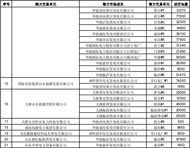 山東2017年10月份電力直接交易(雙邊協(xié)商)結(jié)果公布