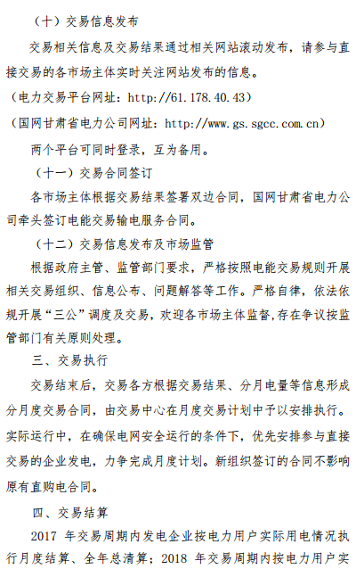 近日,發(fā)布了《2017-2018年通渭縣新能源供暖示范項目供暖期直接交易市場公告》《2017-2018年瓜洲縣新能源供暖示范項目供暖期直接交易市場公告》計劃交易總電量分別為1300萬千瓦時、7890萬千瓦時交易周期對應(yīng)供暖