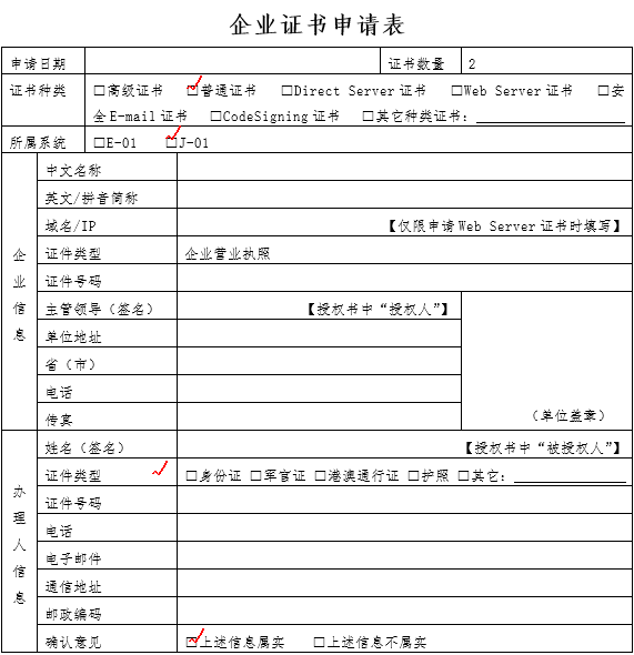 2.2 企業(yè)證書(shū)申請(qǐng)表模板