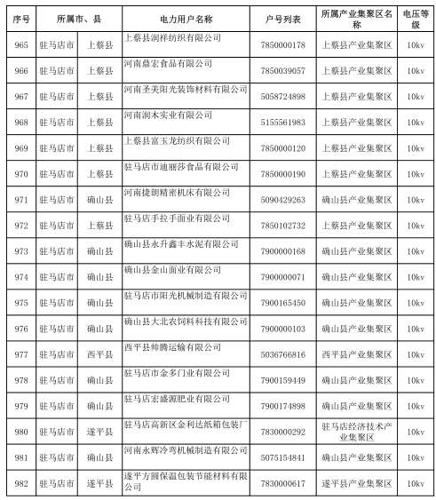 河南2018年第一批準入( 具備交易資格)的982家電力用戶名單