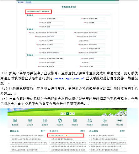 (e)公示期結(jié)束后,注冊(cè)的售電公司生效時(shí)會(huì)將通知短信發(fā)送至注冊(cè)時(shí)填寫的手機(jī)號(hào)碼上,然后用戶即可登錄電力交易平臺(tái)進(jìn)行業(yè)務(wù)操作。