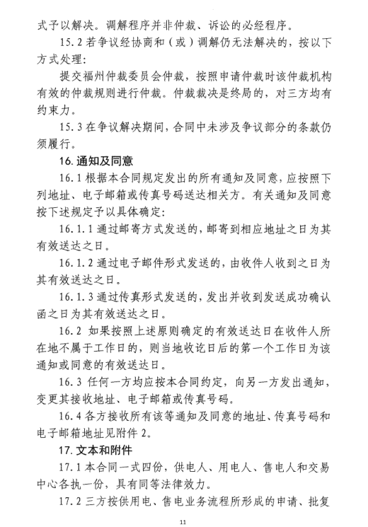 國家能源局福建監(jiān)管辦日前發(fā)布了《福建省電力市場交易相關合同示范文本的通知》,其中包含《福建省電力直接交易三方合同》(示范文本)、《