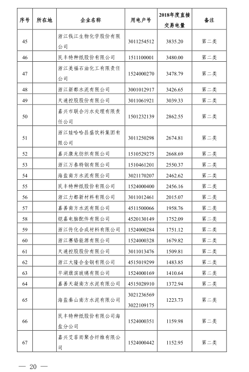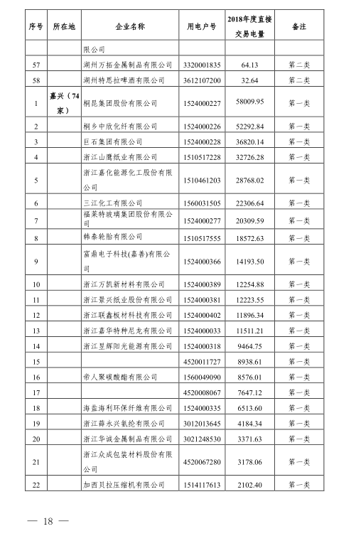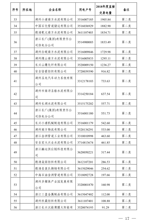 浙江公布2018年度電力直接交易試點電力用戶相關信息