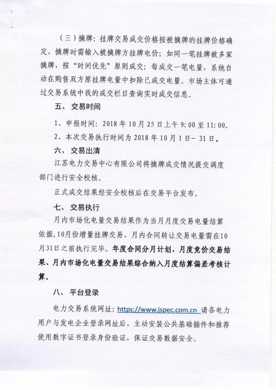 2018年10月份江蘇電力市場月內(nèi)交易公告