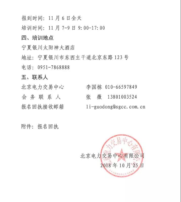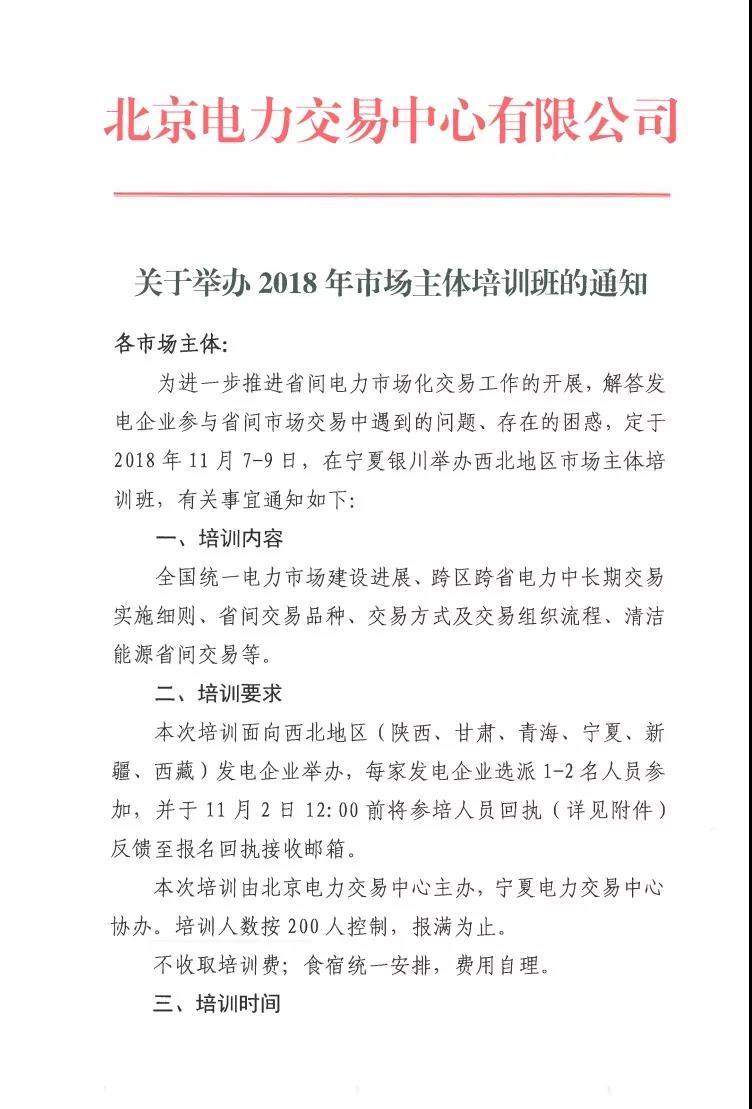 北京電力交易中心《關(guān)于舉辦2018年市場(chǎng)主體培訓(xùn)班的通知》
