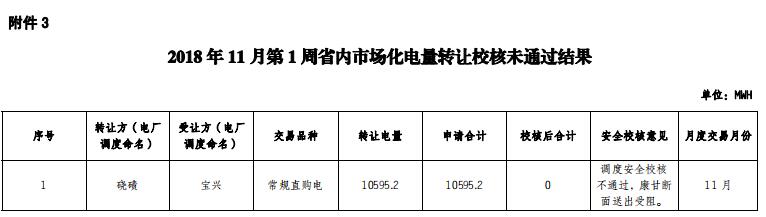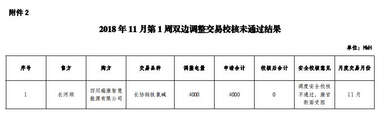 四川2018年11月第1周周交易:合同轉(zhuǎn)讓交易(省內(nèi))成交電量69561.854兆瓦時(shí)