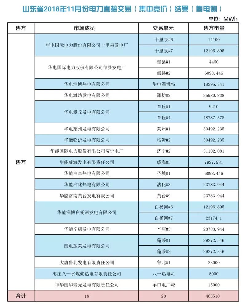 關(guān)于發(fā)布山東省2018年11月份電力直接交易(集中競(jìng)價(jià))結(jié)果的公告