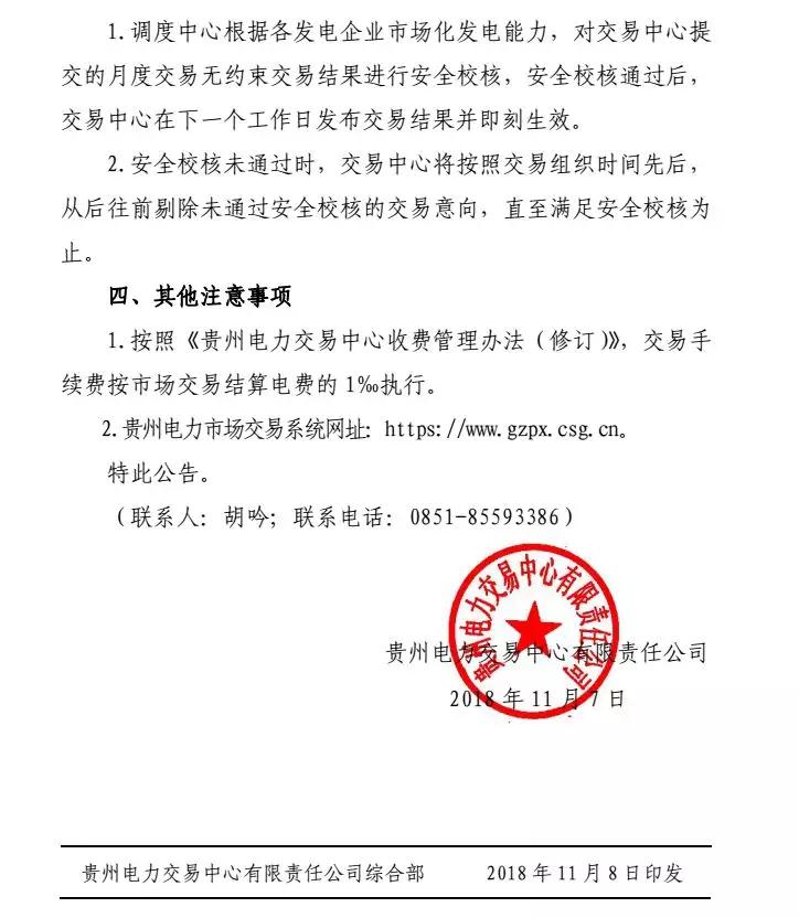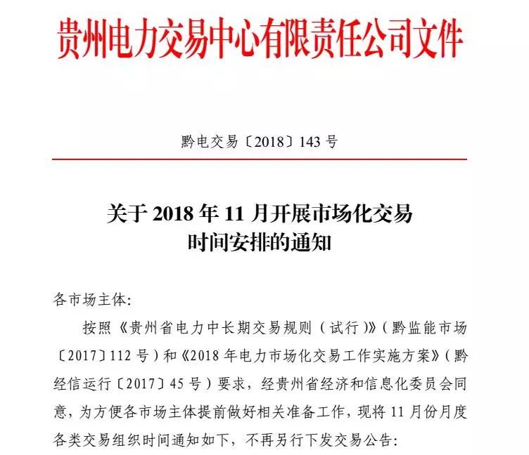 貴州2018年11月市場化交易時間安排:月度集中競價交易申報時間為21日