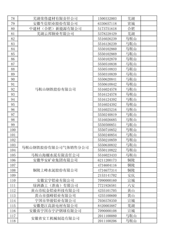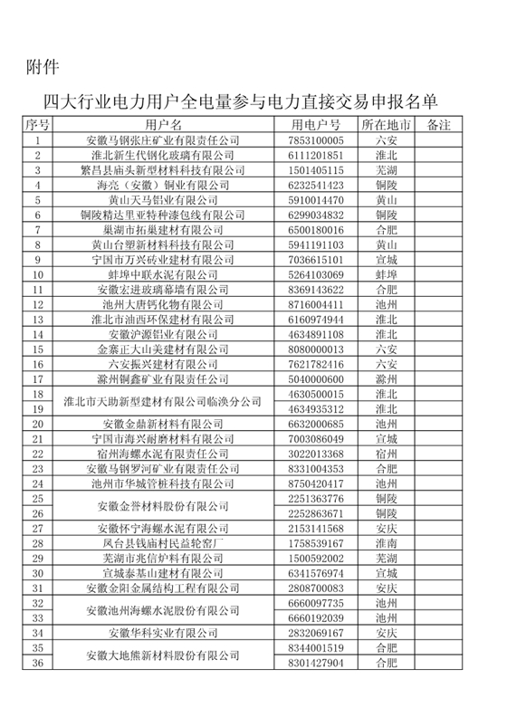 安徽關(guān)于四大行業(yè)電力用戶全電量參與電力直接交易名單公示的通知