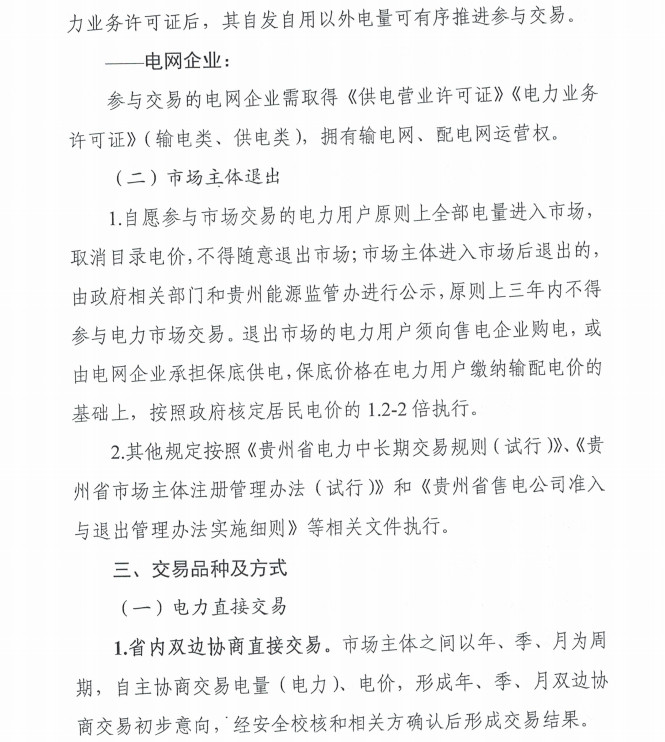 貴州關(guān)于印發(fā)2019年電力市場化交易工作實施方案的通知