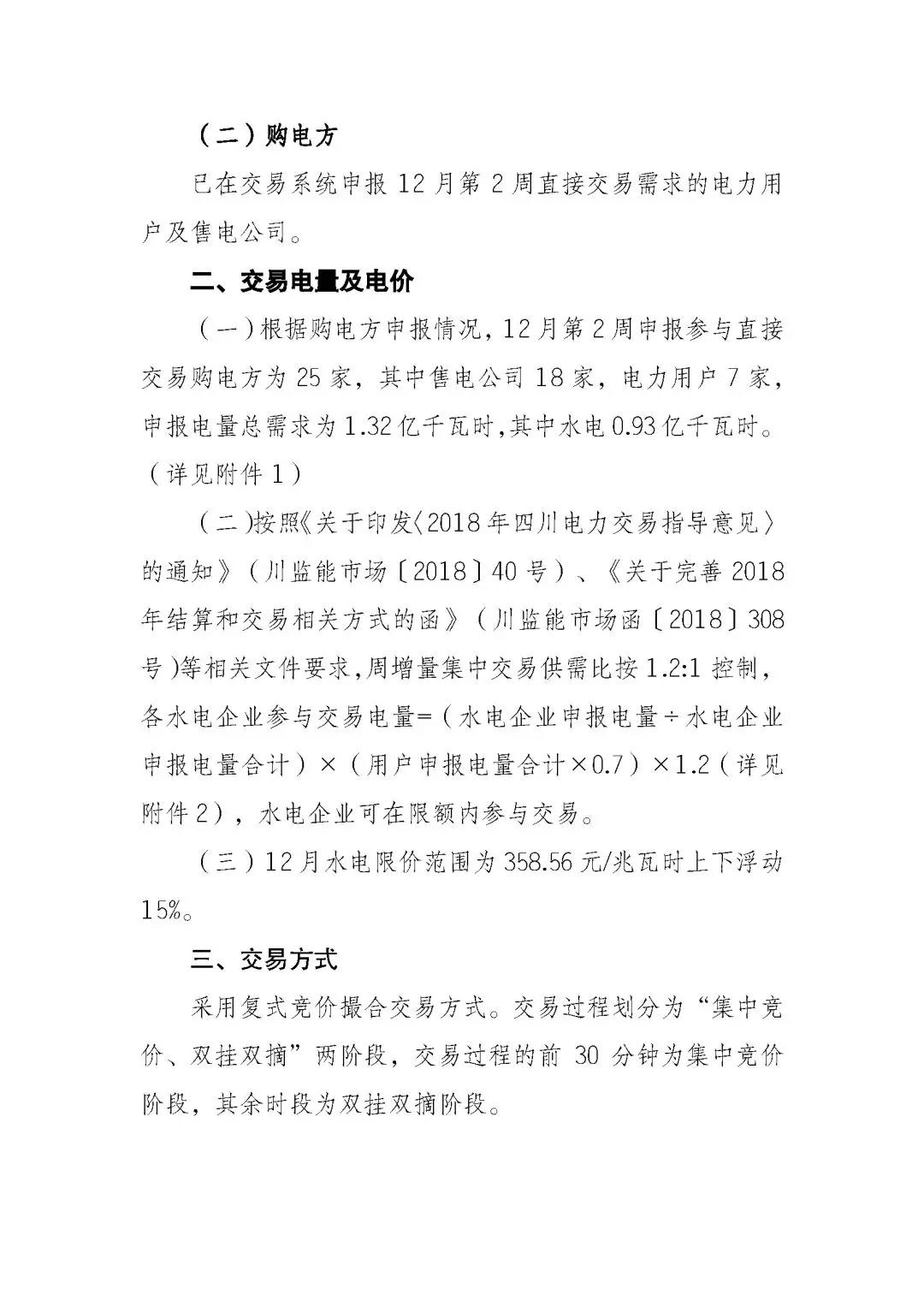 公告 | 四川關于開展2018年12月第2周直接交易的公告