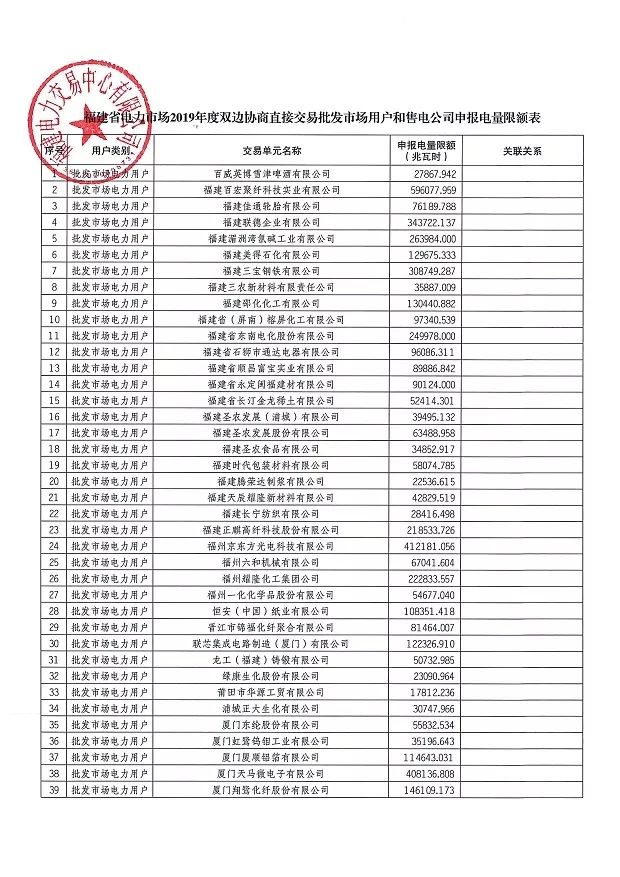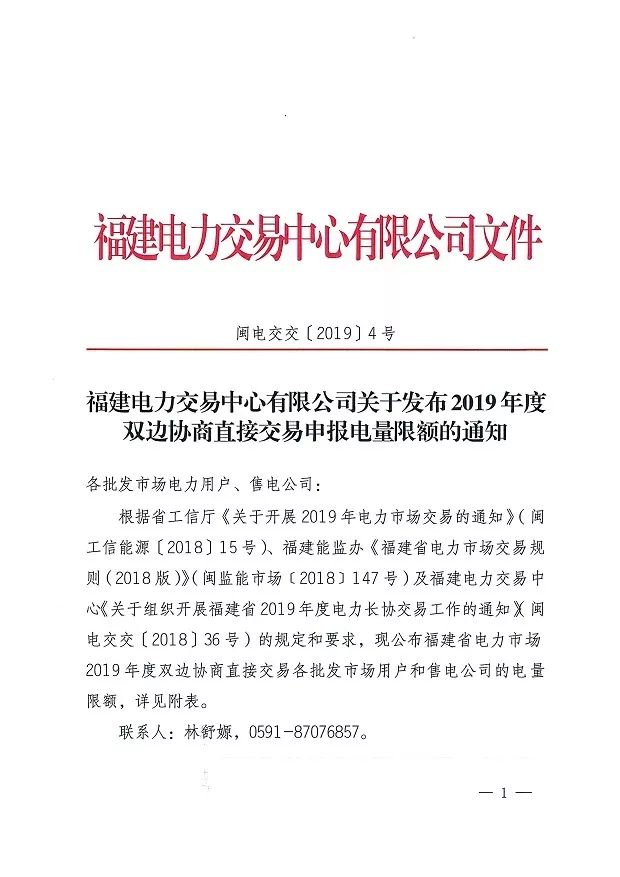 福建電力交易中心日前發(fā)布了《關(guān)于發(fā)布2019年度雙邊協(xié)商直接交易申報電量限額的通知》
