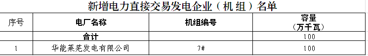 關(guān)于公示新增電力直接交易發(fā)電企業(yè)(機(jī)組)名單的通知