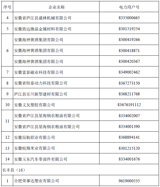2016年12月15日,合肥市發(fā)改委向安徽電力交易中心提交了擬參與2017年直接交易電力用戶332戶,并說明其中85戶存在用戶號錯誤等疑問。根據(jù)有關規(guī)定,交易中心安徽電力交易中心對外公示了初審無異議的247戶用戶。2017年1月13日,合肥市發(fā)改委對存疑的85戶進行了進一步核實和修訂,并將符合規(guī)定的76戶企業(yè)再次報送,現(xiàn)予公示(名單附后)。