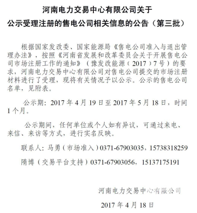 河南新公示9家售電公司(第三批)