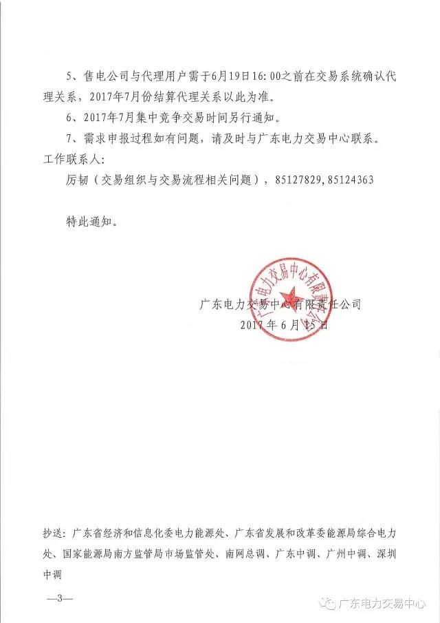 廣東電力交易中心日前發(fā)布了《2017年7月集中競(jìng)爭(zhēng)交易需求申報(bào)的通知》,通知中稱,交易時(shí)間為6月15日16:00至6月19日16:00,申報(bào)主體:與市場(chǎng)用戶建立2017年7月購(gòu)售電關(guān)系的售電公司和選擇參與批發(fā)市場(chǎng)交易的大用戶。