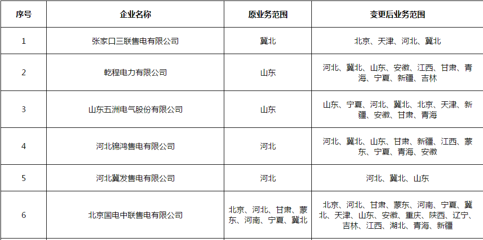 北京新公示12家業(yè)務(wù)范圍有變更售電公司