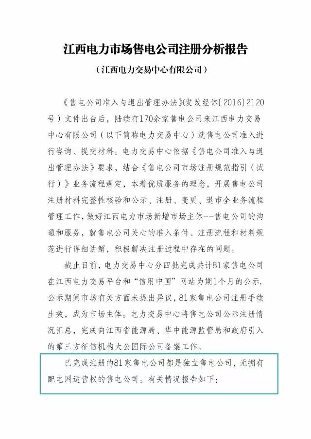 江西交易中心發(fā)布售電公司注冊分析報告