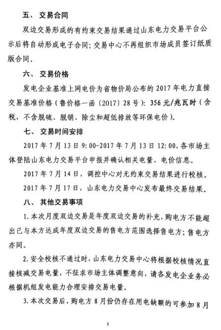 根據(jù)魯監(jiān)能市場〔2017〕87號通知要求,現(xiàn)組織開展2017年8月電力直接交易(雙邊協(xié)商),具體要求詳見交易公告。