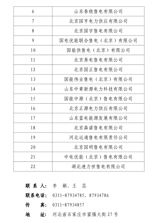 河北《關(guān)于公示受理注冊的售電公司相關(guān)信息的公告》 公示22家售電公司