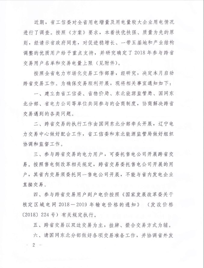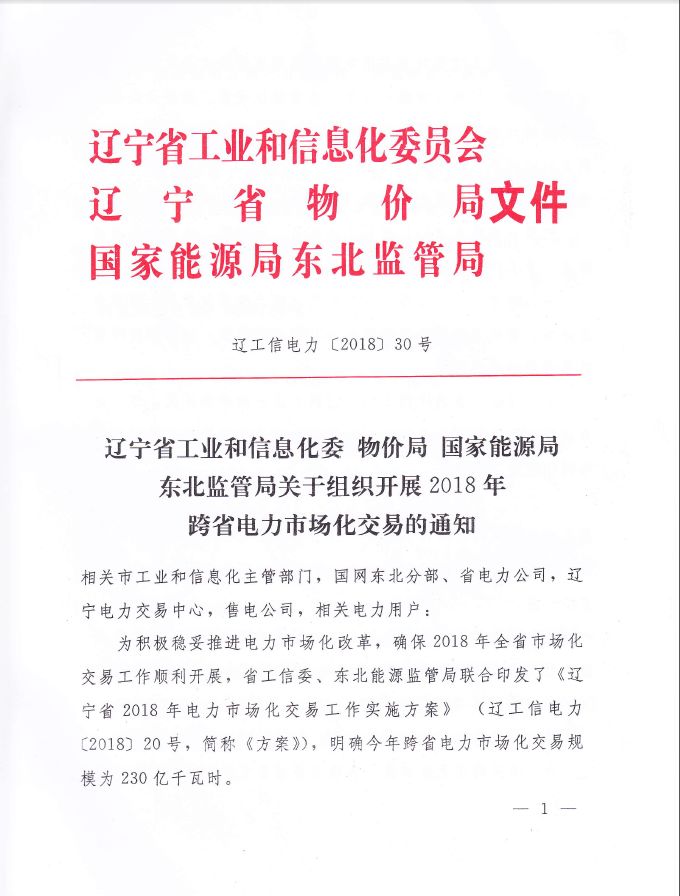 遼寧省工信委、物價(jià)局、國(guó)家能源局東北監(jiān)管局日前聯(lián)合發(fā)布了《關(guān)于組織開展2018年跨省電力市場(chǎng)化交易的通知》,通知中稱,將于3月啟動(dòng)跨省...