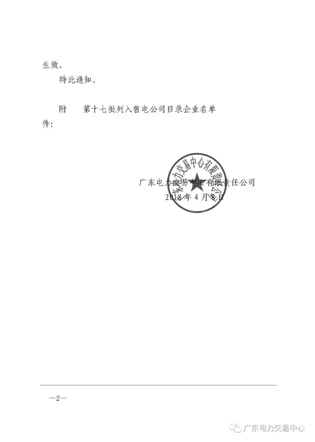 廣東省第十七批列入售電公司目錄企業(yè)名單