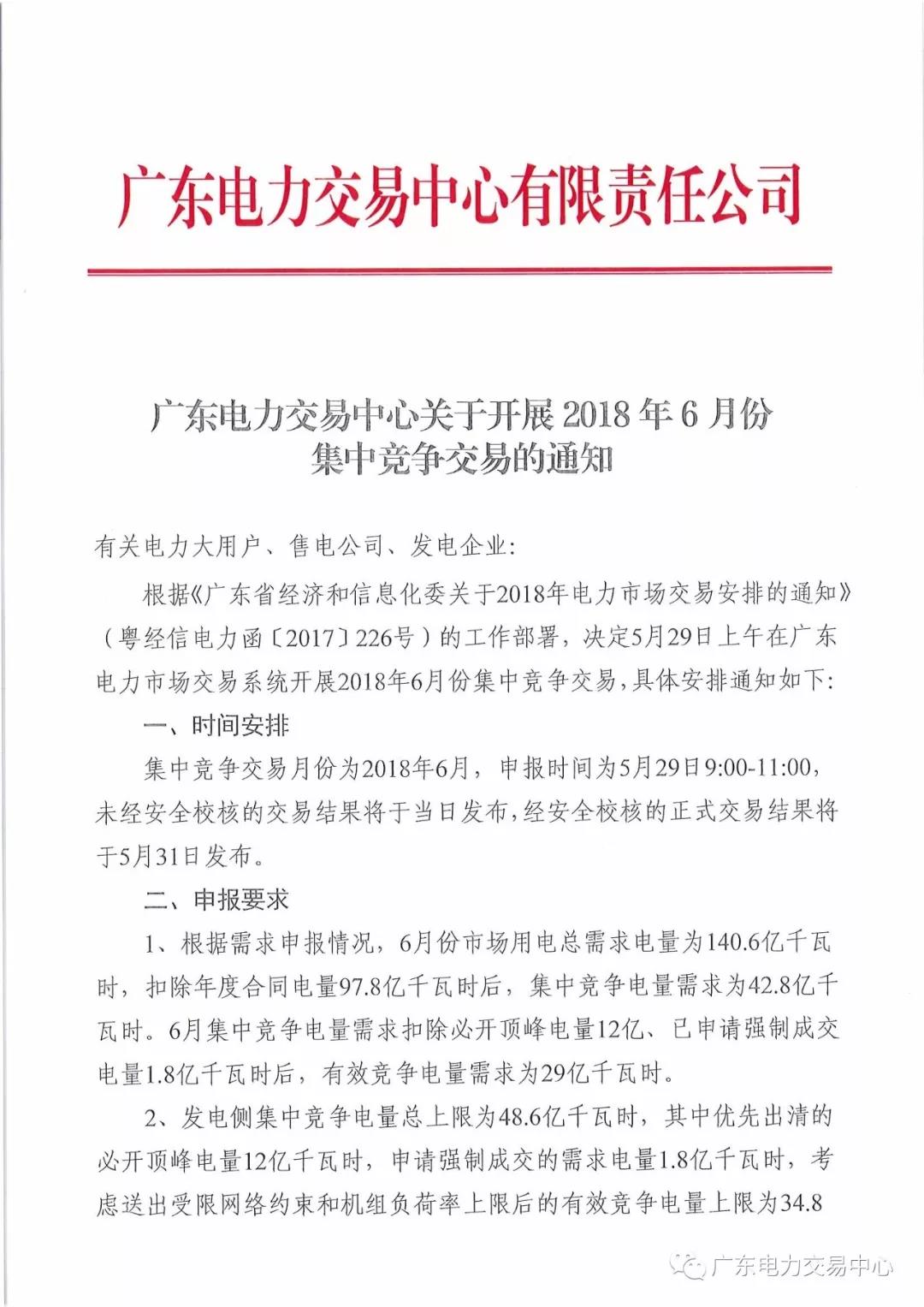 關(guān)于開展2018年6月份集中競爭交易的通知