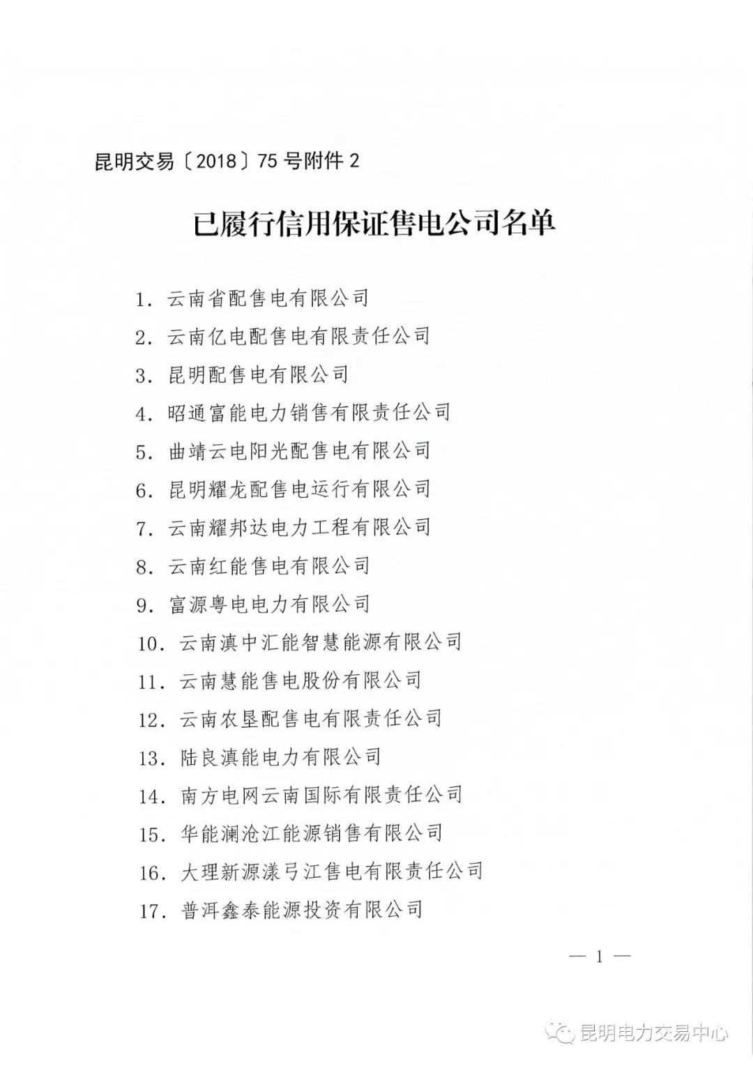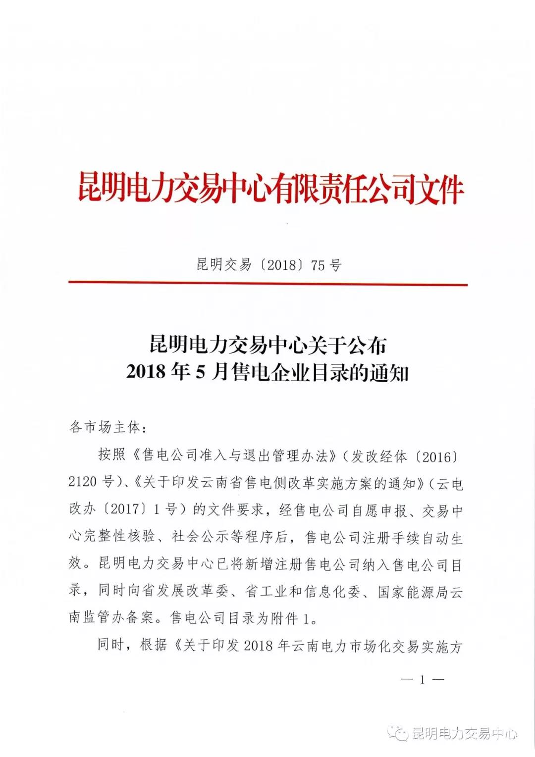 昆明電力交易中心關(guān)于公布2018年5月售電企業(yè)目錄的通知